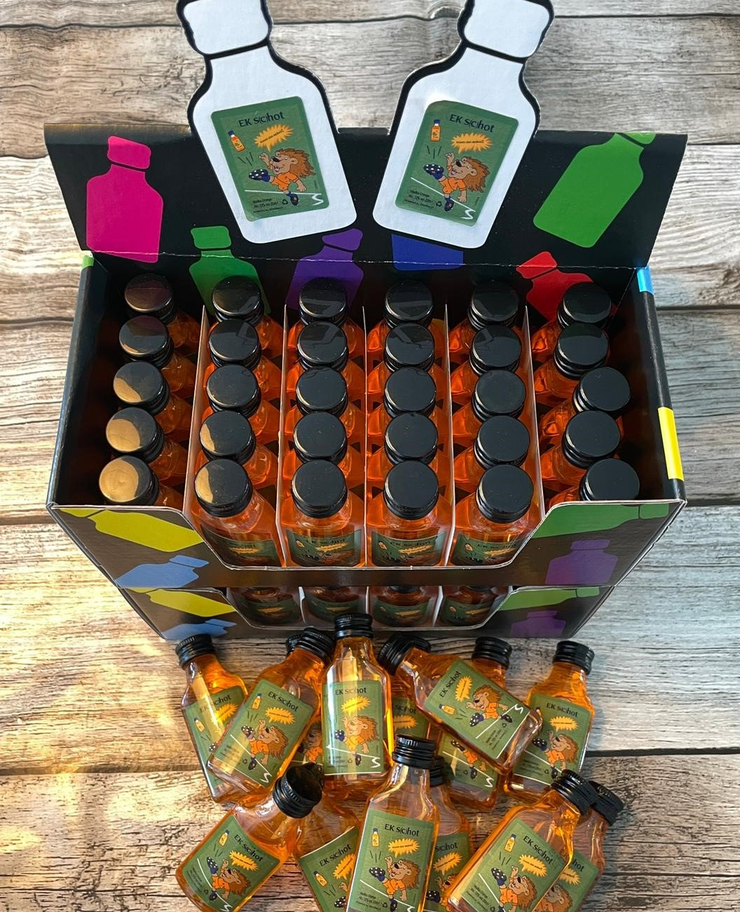 De shots zijn verpakt in dozen van 30 stuks. Ideaal voor thuis voor de buis, maar ook in café's, restaurants, kantines en festivals zijn deze lekkere shots een lekkere en gezellige aanvulling. Voor meer info en prijzen, neem contact met ons op!